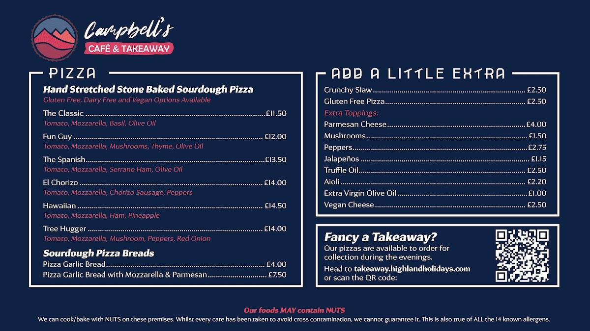 Welcome to Campbell's Café & Takeaway, a delightful haven nestled at the Ben Nevis Holiday Park in Fort William. This charming café is the spot to indulge in a wide range of delectable meals, whether you're starting your day with a buttery croissant or a hearty full breakfast. Their breakfast menu is impressive, featuring options like fluffy pancakes drizzled with maple syrup or a classic Scottish fried breakfast, all reasonably priced.